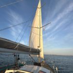 Most of the time only using the fore sail. Tried the main sail and also the Gennaker. But that wasn’t working well with the waves from behind.