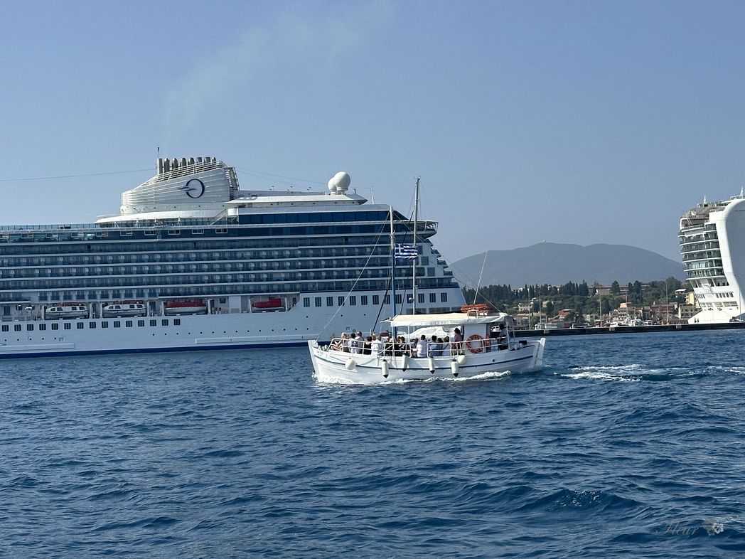 Just a 2 hour tour to the Gouvia Marina. RoRefill water, tidy up the boat and get ready for the long way to Dubrovnik. On the way rounding the old town of Corfu. At the new harbor huge cruise ships are docked. Each likely some 3000 to 5000 or so passengers.