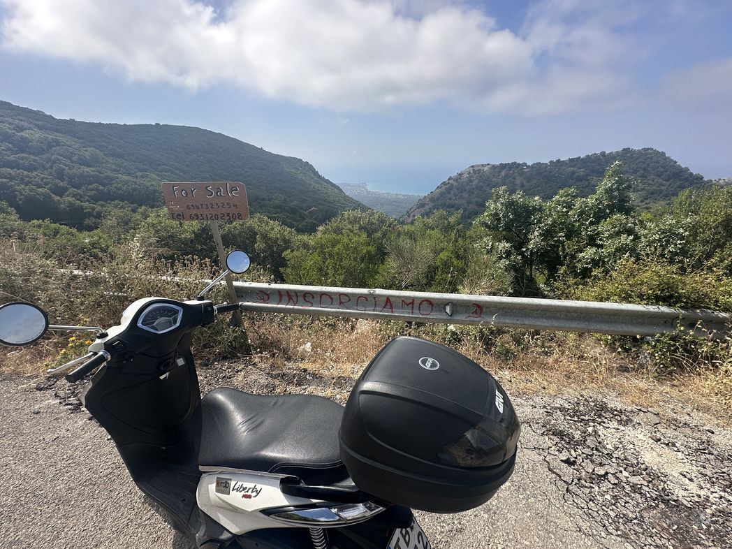 Renting a scooter and discovering the island is an excellent idea. As there is a scooter rental right at the marina, that is easily put into action. 40 Euros for a day with a 125cc at mymoto is reasonable. Quickly filled in the papers, get some suncream, swim gear and mobile … and here we go.