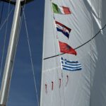 At 11:00 I am at the entry point to the water way to get into the laguna. So far only few boats on the water. But it is Sunday. In Italy. People get started at 10:00. And that’s how it went. Like woken up by a joint signal, about 20 sailboats and 100 small motor boats get out to sea. Constantly we need to adjust course, making sure not no crash into one of those.