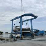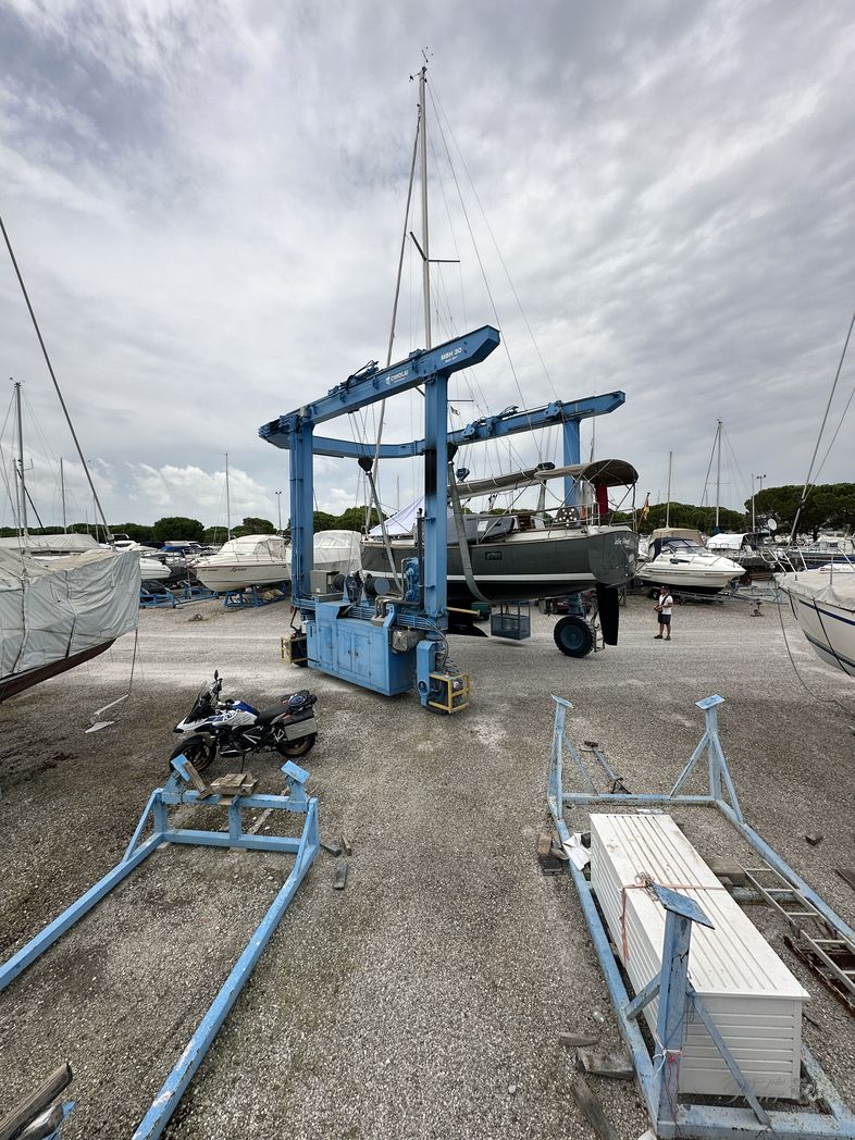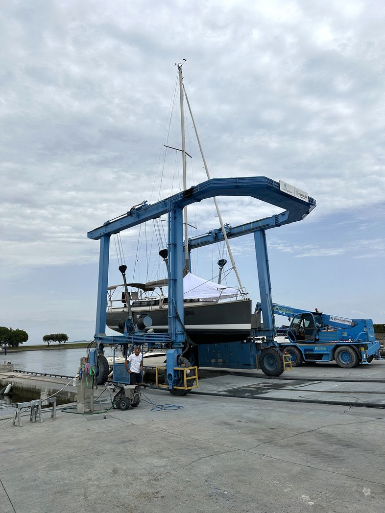 We pushed it hard to get to the Marine before lunch break. Just didn’t make it. Parked the Jolie Fleur at the dock. Had to wait until 15:00 to get her out of the water and to the dry dock.