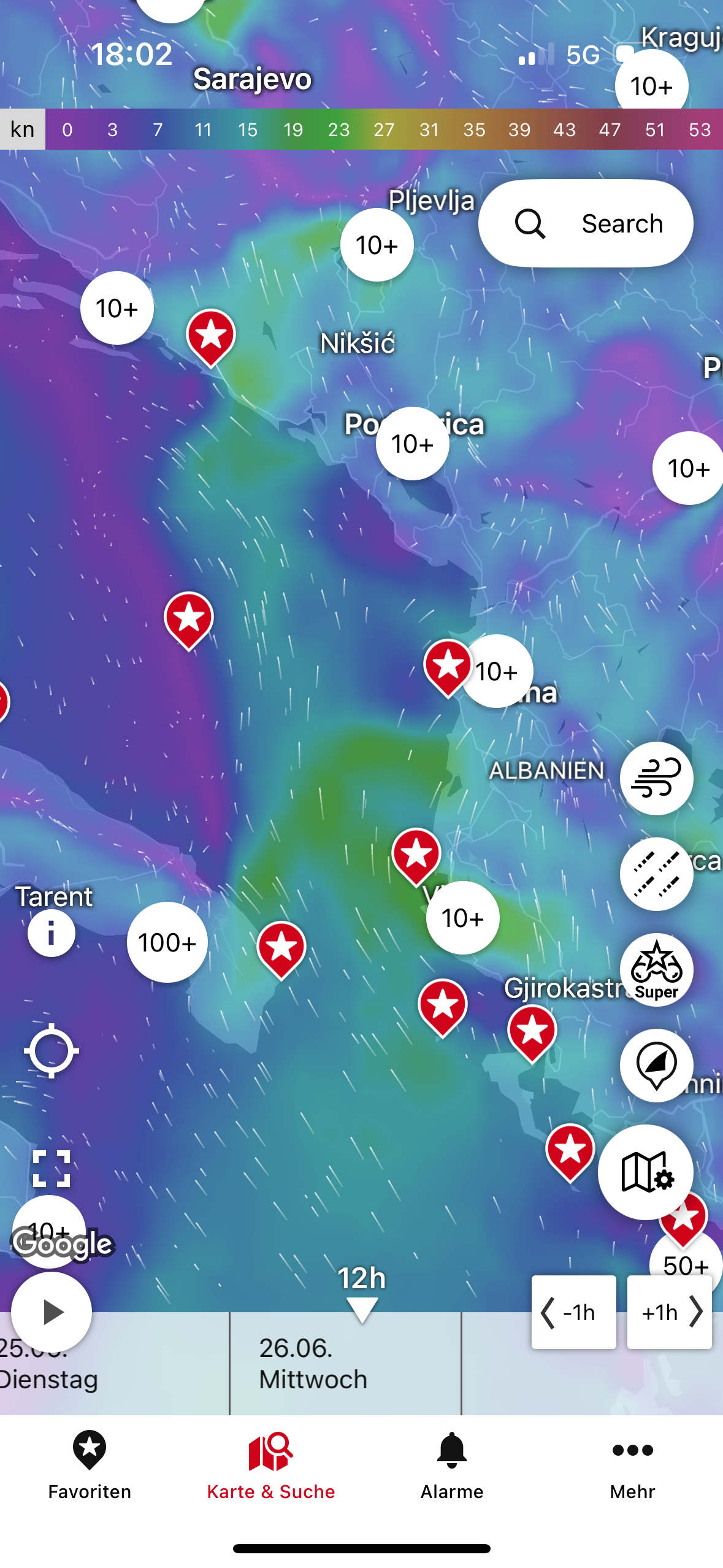 Wind 0-15 kn,W, sun