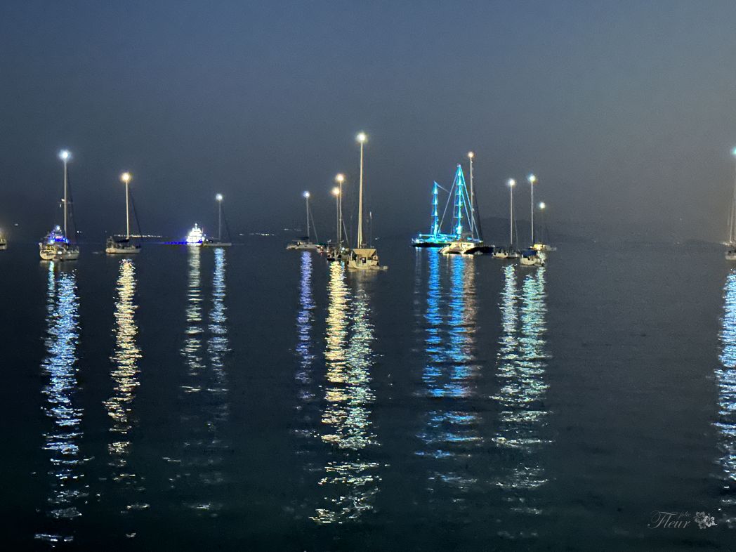 Looking at my hands, realizing that they get stronger and the soft office skin is gone. Roughed up by pulling ropes and setting anchors. Sailing with its rewards of nice places, good meals and sunsets needs to be earned 🙂