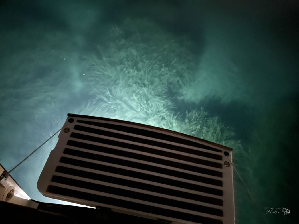 I had to try 5 (!) times to find a suitable spot to anchor. Since the Jolie FLeur is not equipped with a anchor windlass, it is all manual work to set and lift the anchor. The anchor is some 9kg and the chain another is 40 m with some 20 kg or so to lift. My back hurts and the fingers burn. I already hate this place.