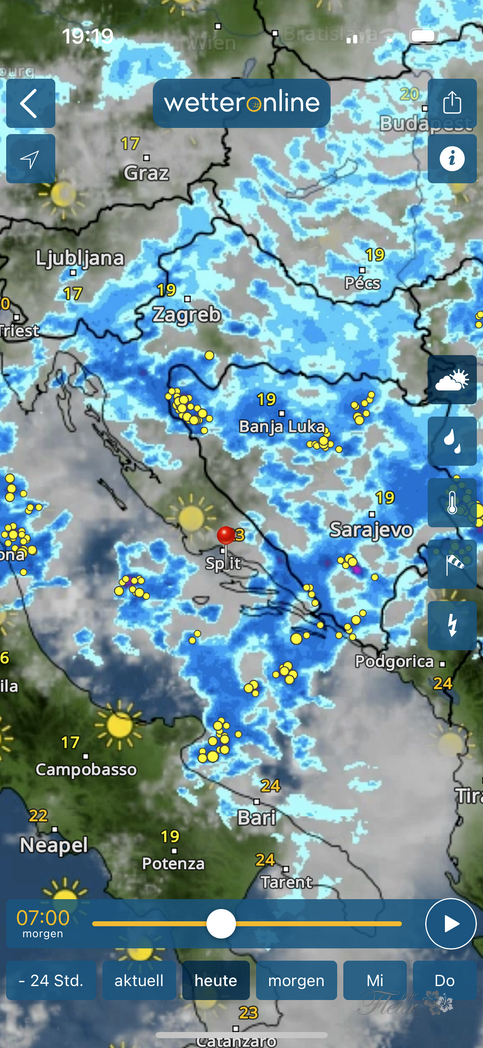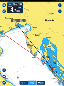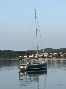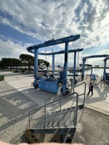 The weather, always a sailor’s primary concern, has delayed our departure by a day. Rainy conditions and thunderstorms out at sea have forced us to wait, but the forecast promises better conditions in the next 24 hours. We’re now set to depart tomorrow at 08:30, when the crane will gently lower Jolie Fleur into the water, and we’ll begin our southward journey. Our first stop will likely be Piran, Slovenia, where I’ll need to calibrate the new instruments on the open sea. The weather for the coming days looks mixed, with mostly headwinds, so we’re anticipating a slow start as we make our way south.