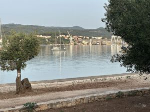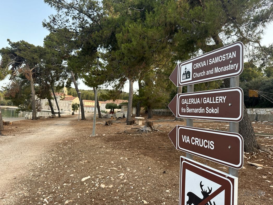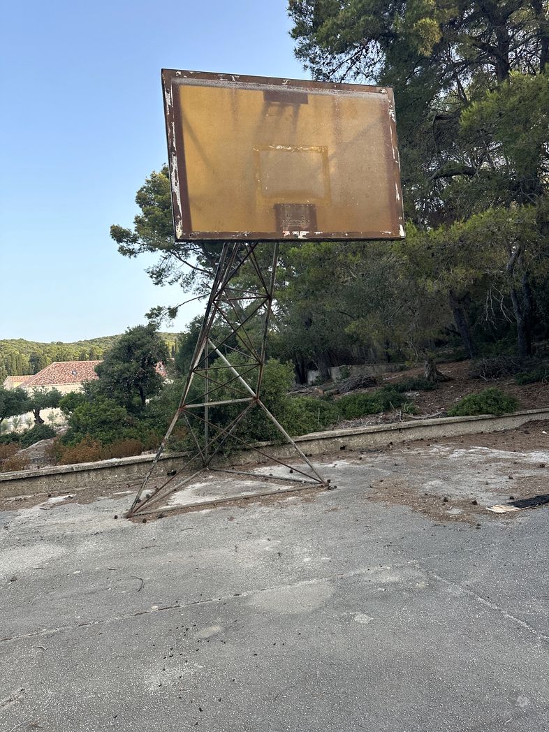 Got up early. Very quiet it is. No motor boats, no tourists. Go for a swim. Paddle over to the Badija monastery. (The Franciscans owned Badija until 1950 when the island was expropriated from them and later used as a sport and tourism centre). Deers show up. A deserted basket ball field. Very peaceful.