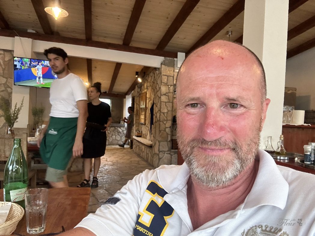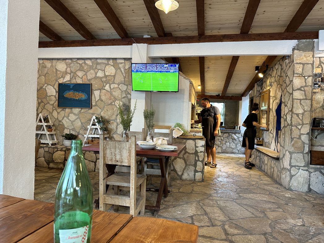 I was planning for a long trip towards north today, with a supporting wind forecast. But that wind didn’t pick up as expected. Motoring some hours. I got bored, looking for a place to stay. Scedro island and the Restaurant Moster comes to my mind, which is on the way.