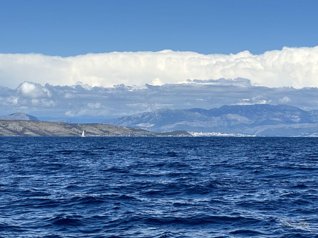 Wind is slow but steady. So pointing to the next island, Mljet. I know an anchorage at the northern end, from a trip some years ago. That’s the target for today.
