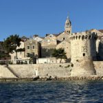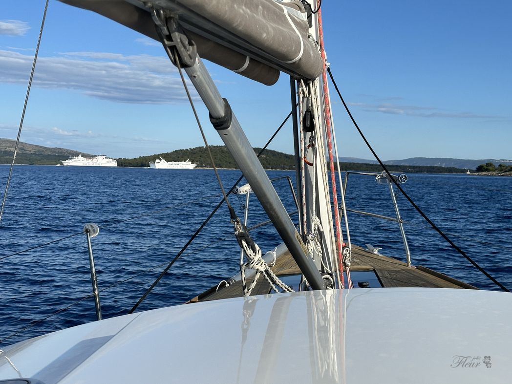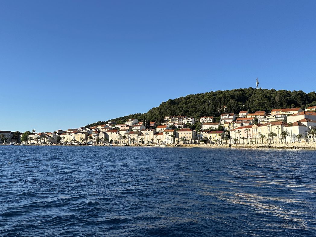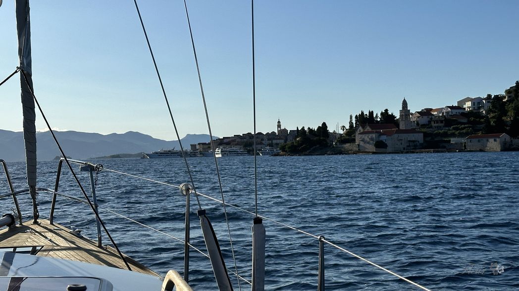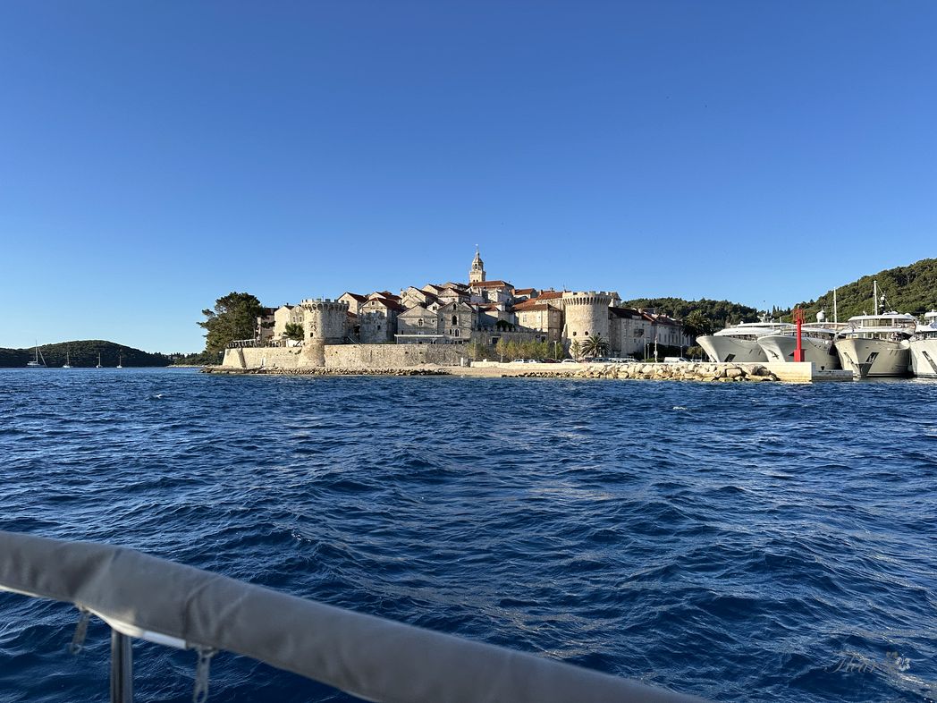 Before Korcula city, sun comes up. It is getting warm quickly. Korcula is quite a touristy, a busy town. Many cruise-ships there, taking off one by one. A stressful situation navigation in-between some 10-15 very large vessels. Puh.