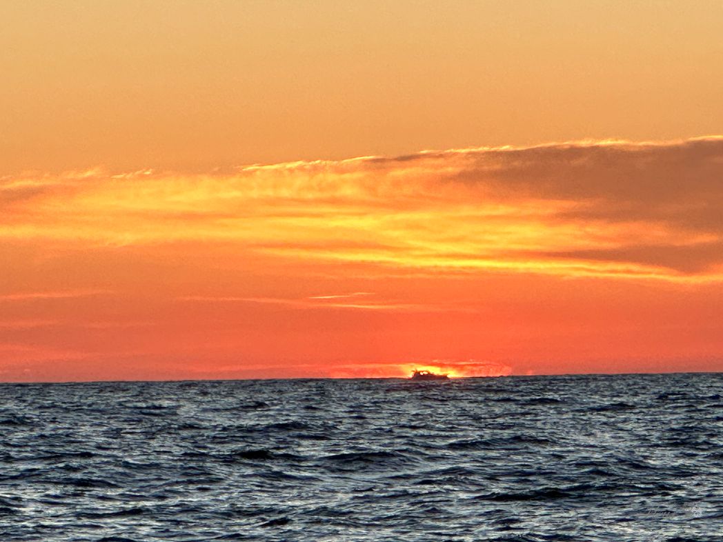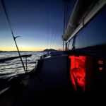 It is a clear sky with an impressive amount of stars. The cloudy milky-way. Overwhelming. Jolie Fleur’s mast and top lights are circling in a everlasting rhythm.