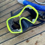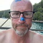 At that day, after the long trip from Corfu and the sailing against the wind today, things did go well. I was still tired and was making sure all was perfect to not have a second try. After all done and reversing to shore, I put on the diving goggles and some shoes to get on the rocks. Some two boat lengths from shore, motor off and quickly jumping head first into the water. A big mistake! The glas of the diving goggles burst into pieces. First I didn’t even recognize it, irritated, the visibility was bad. Pushed the goggles up my head. Another big mistake, as the tiny glass splinters cut my nose and head. Me, bleeding like hell from those cuts, looking like a pirate coming home from work. Not a good start, nevertheless still need to swim to shore, climb up the rocks and attach the rope. Since all took a while, the Jolie Fleur already drifted away, making the rope went short. Just need another meter or two. Pulled very hard to get that rope with the Jolie Fleur attached … and slipped on the rocks cutting my ankles and back. Hell.