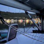 On the last tack, just about lowering the sails, the motor didn’t turn on. Jut a “clack”, as if the battery was empty and the starter didn’t turn. I tried a couple of times … nothing. All the while the Jolie Fleur was at a steep lean angle in some 30 knots of wind and a bumpy sea. Terrible. Adrenaline pumping. Without motor, no mooring. I am tired, don’t like to sail another 10 hours to a harbor or shipyard. Since having a separate starter battery and a auxiliary battery, maybe I can bridge those to start the engine. All that electric is in the aft cabin under the bed, on that all the spare sails and other equipment is piled up. Get all that stuff out of the cabin, get access to the battery, find some wires,…. Puh. Sweating. Access to the batteries is difficult and I didn’t find some thick wires. I will give another try to start, before doing anything else. Put the gear and clutch lever into reverse, forward and back to neutral. Push the start button … and the starter turns the motor. Great. It didn’t start yet. Likely the cylinders are flooded. Pre-heat the glow plugs a couple of times. Try again the starter. After a lot of turns the motor came to life. A huge relief! Adrenaline off. Sails down. Motor to the mooring.