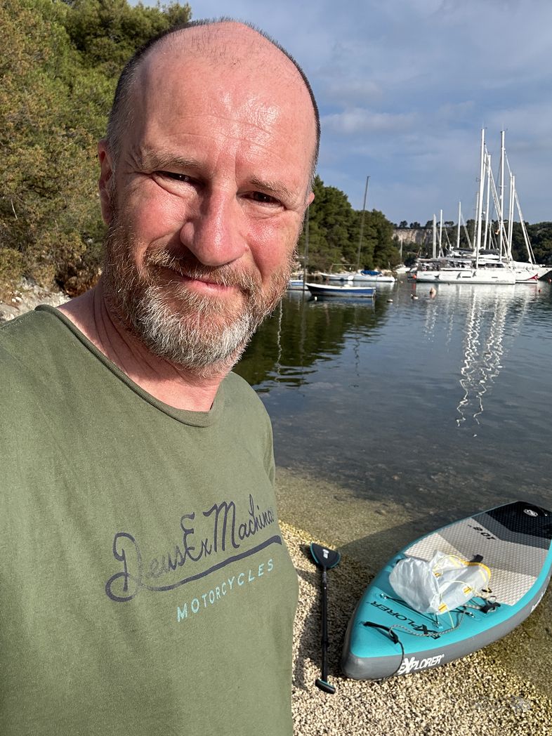A nice, relaxed morning. I got up early. Took the SUP for a spin round the fjord. Most crews are still asleep. Paddling near the shore is like flying, as the water is crystal clear and the eye can hardly differentiate where air end and water begins.