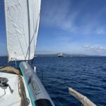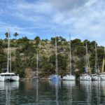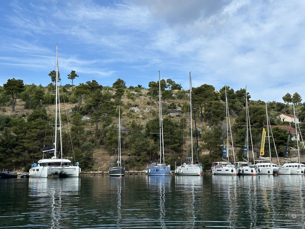As we just have some 15nm for the day and wind favorable forecasted, we take it on very relaxed. Disembarking of the other crews is always a show. Some smooth and easy, other less experienced with some hassle. One of the medisailors boat got stuck in the mooring line. A near disaster. The boat adrift without control, the nearby crews prepared fenders to soften a possible impact. Quickly one jumped into the water to clear the rope. All clear. Good show. Off they go.