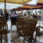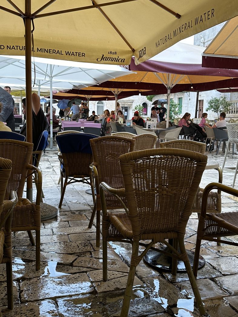 I will not stop raining for the next couple of hours. Umbrella and rain gear, we look for a nearby restaurant for Dinner. Table Inside. After dinner the rain got less and we had a short walk round the old city center.