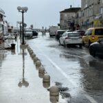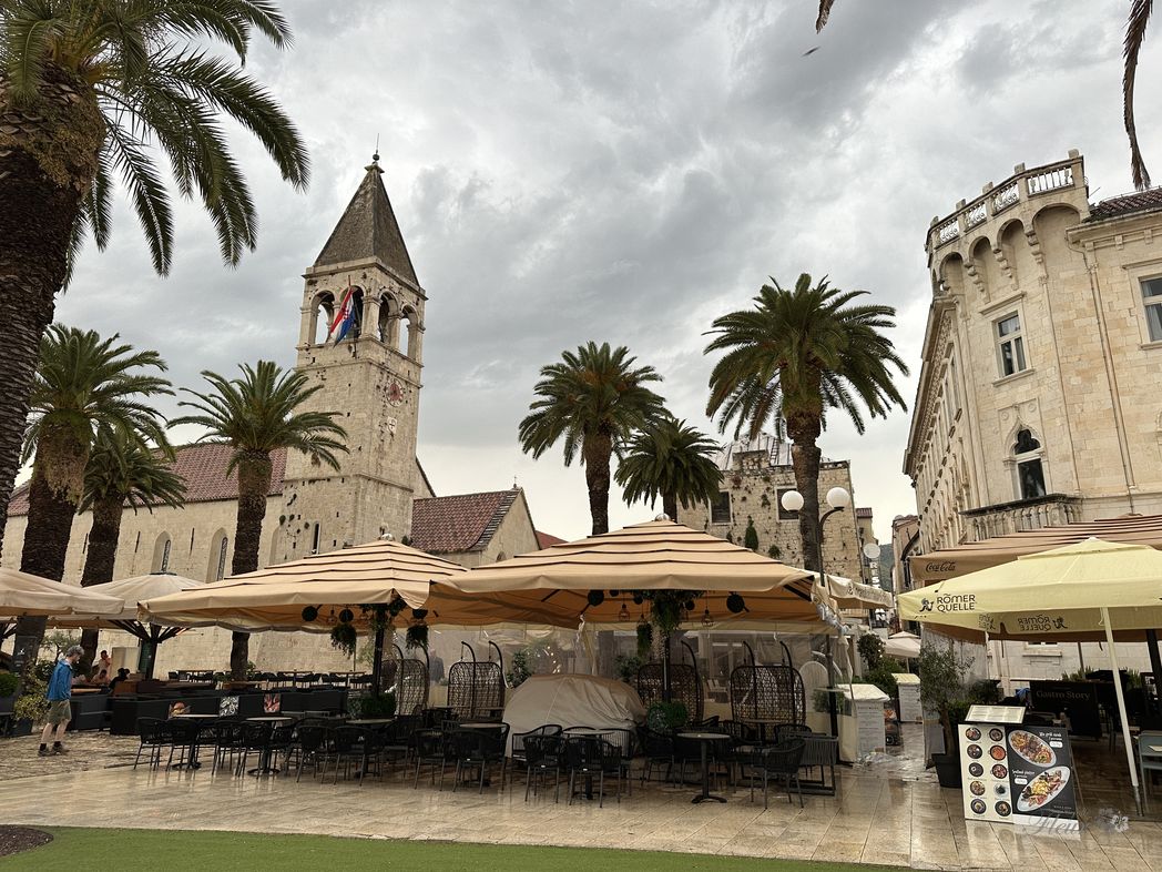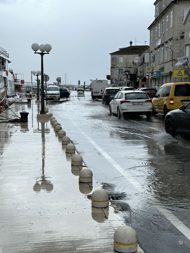 Tidy up the boat. Taking a long shower. Having a beer. So far sunny. Now clouds rolling in from the West. Dark clouds. Right at that moment, as we decided to have a walk to the city, the rain started. Not a soft dripple. A heavy thunderstorm rain. The city is not build for rain. Quickly large ponds are created, small rivers down the streets.