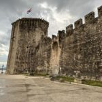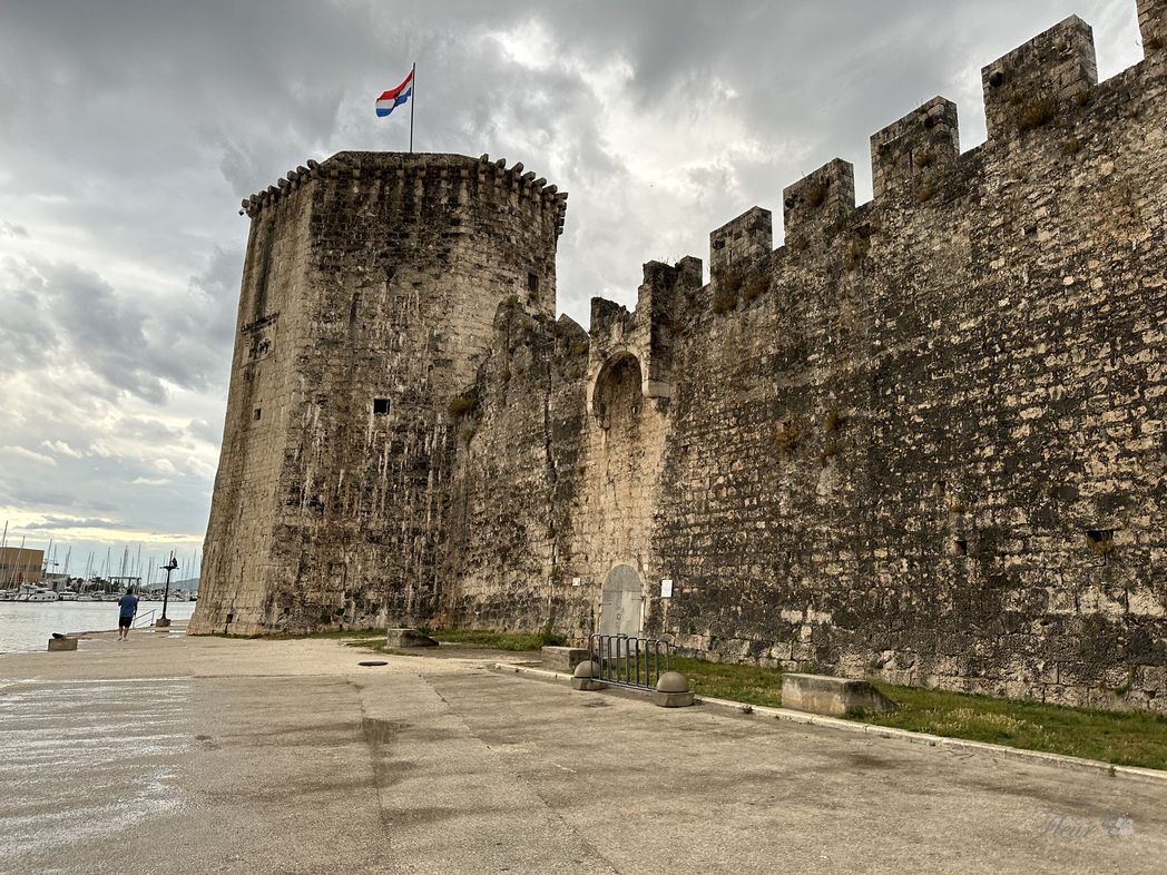 The 15 miles to Trogir are smooth. Getting into the harbor bay. First stop at the petrol station. Next stop Marina Trogir (76 Euro / night).